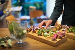 パーティー用のフィンガーフード。フラワーで目が覚めるような華やかを。