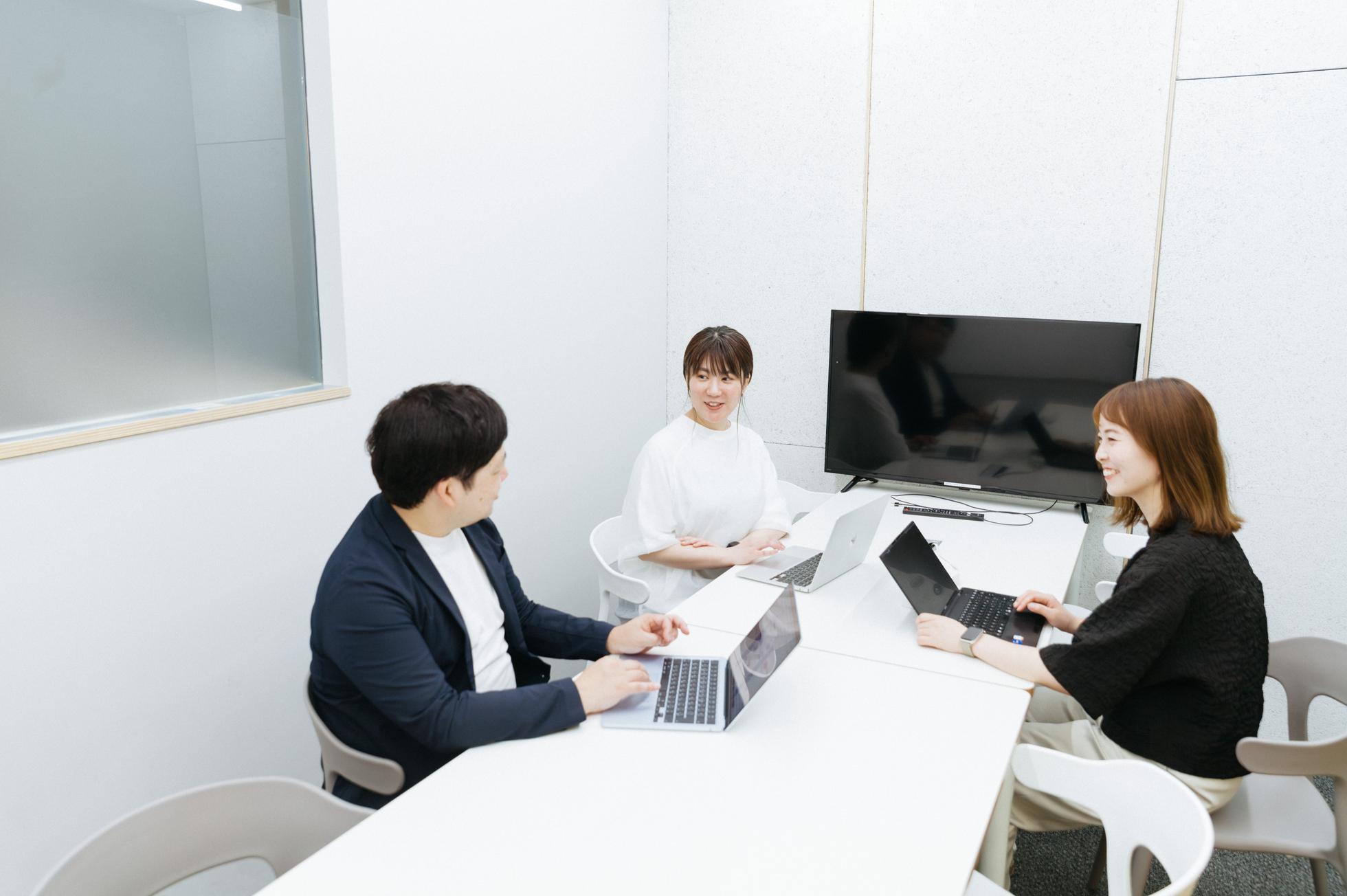 真剣に意見を出し合うミーティング中もつい笑顔がこぼれるのは、信頼し合っているから