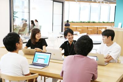 六本木一丁目駅直結のオフィス。写真は社内外の方が使用可能なフリースペースです。