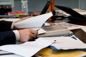 社長の机は常に書類の山△ 捨てればいいのに!(えw ちなみに自分の机はマグカップがぽつんとあるだけです(寂