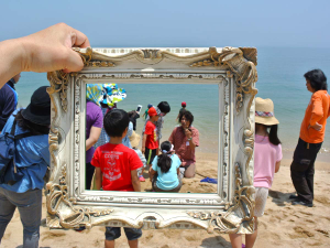海岸清掃の様子を絵画のように楽しもう!という授業。
