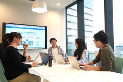 六本木一丁目駅直結のオフィス。写真は社内外の方が使用可能なフリースペースです。