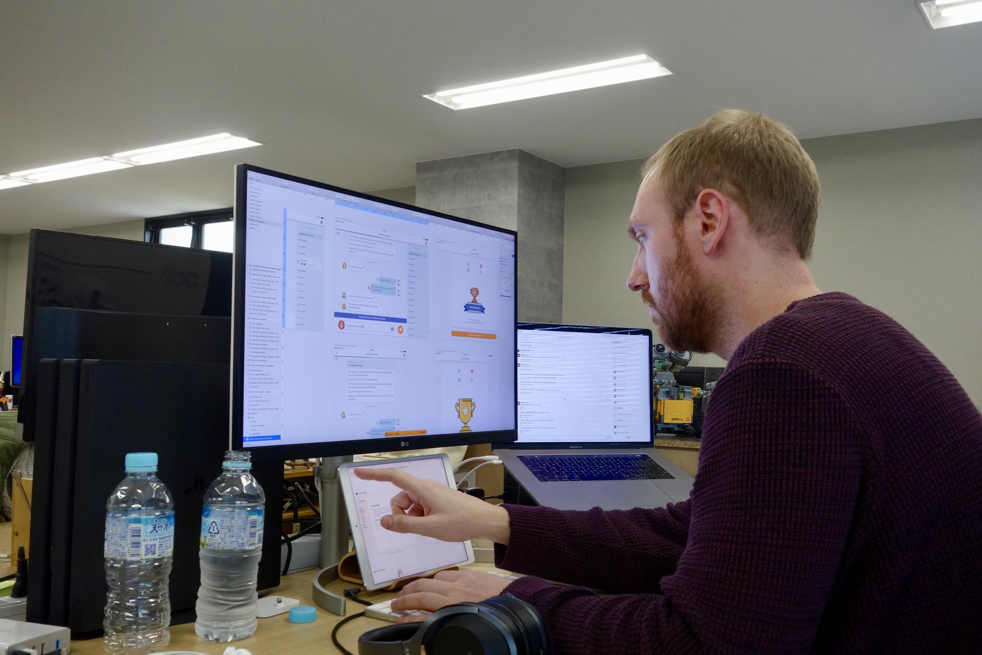 製品開発においては「仮想オンラインスクール」という仕組みがあります。これは、社内のメンバーが担当の垣根を越えて、先生または生徒として、現実のユースケースに沿って製品を使い英語を学ぶ体験をすることで、製品の課題や改善点を抽出する活動です。前例のない、最先端の製品開発を行うためには、教務・教材、デザイン、エンジニアリング、ビジネスが、全体最適で取り組むことが必要だと、ジョイズは考えています。