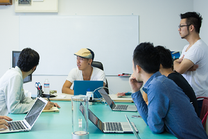 会議では自由に提案・発言し合います。 <LIGでは個性を大切にしています>