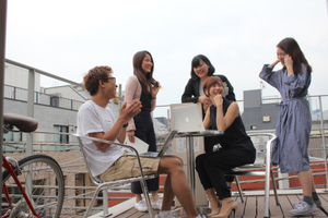 オフィスにはテラスがあり、天気がいい日はここで仕事をすることもあります。