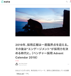 (ベンチャー採用 Advent Calendar 2018)|カトウキョウスケ @kyo_spr|note(ノート)