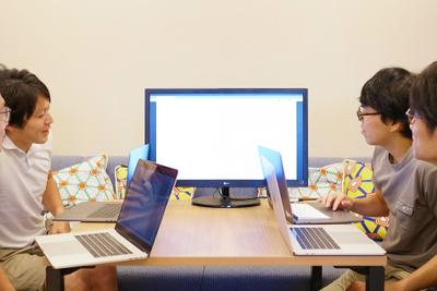 Gunosy社員の専用エリアは完全フリーアドレス制で、全席にディスプレイを完備しています。