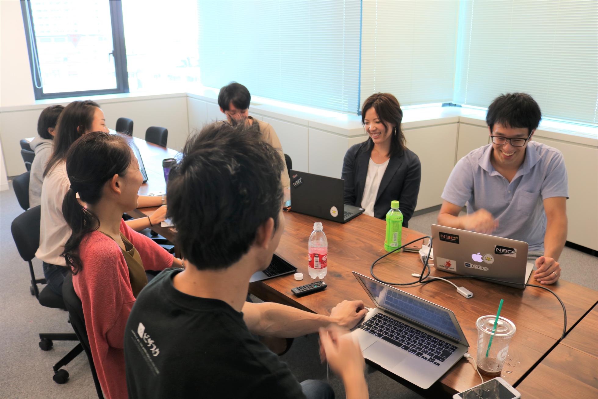 打ち合わせ風景。年次や立場は関係なくオープンに意見を出し合えるカルチャーです。