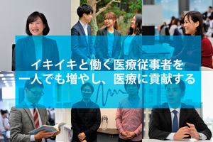 私たちは「イキイキと働く医療従事者を一人でも増やし、医療に貢献する」というミッションのもと、人材サービス・メディア・医療機関経営コンサルティングサービスなどを提供しています。