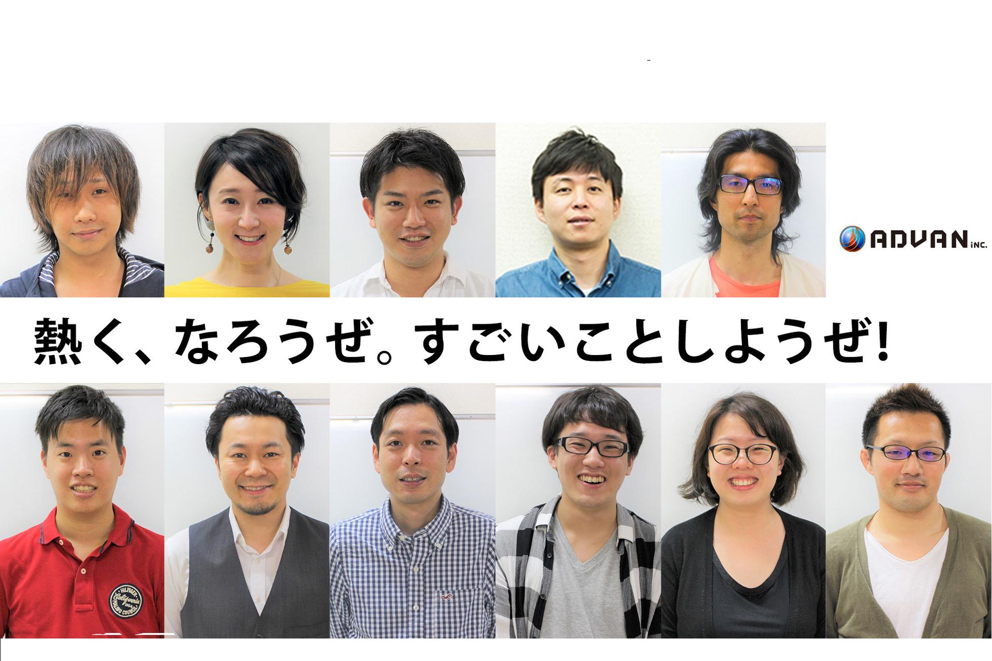 ■Value 1.誰よりも、前のめりに! 2.小事が大事を生む。 3.相手の人生に、イノベーションを起こそう! 自社にデザイナーとエンジニアが常駐  ̄ ̄ ̄ ̄ ̄ ̄ ̄ ̄ ̄ ̄ ̄ ̄ ̄ ̄ ̄ ̄ ̄ ̄ 成果が出せるよう色々なクリエイティブ施策の立案から実行、分析まで行い、 営業・運用・クリエイターが三位一体となって協力し合います。 エンジニアは、案件の管理や、広告の運用のために自社独自のシステムの構築もしているため、他社とは差別化をした広告の提案などが可能になります。 年齢や過去のキャリアに関係なく、誰もが成長できる環境  ̄ ̄ ̄ ̄ ̄ ̄ ̄ ̄ ̄ ̄ ̄ ̄ ̄ ̄ ̄ ̄ ̄ ̄ メンバーは10名で、平均年齢は32歳。 なんと、全社員が経験ゼロから入社しています。 「やる気さえあれば誰でも成長できる環境」それがアドバンの大きな魅力です。 ルーティン作業が嫌いな人に最適な環境  ̄ ̄ ̄ ̄ ̄ ̄ ̄ ̄ ̄ ̄ ̄ ̄ ̄ ̄ ̄ ̄ ̄ ̄ ̄ 四半期ごとに個々で成長のための行動目標を決め、どれぐらい実践・達成できたかを評価します。 アドバンでは指示を待つだけの方や、ルーティーン的な作業を好む方はマッチしません。 モチベーションを持って自発的に行動できる方、新たな価値を創造したいという志がある方は十分に活躍できる環境です! ライフイベントに関わらず理想のキャリアを築ける  ̄ ̄ ̄ ̄ ̄ ̄ ̄ ̄ ̄ ̄ ̄ ̄ ̄ ̄ ̄ ̄ ̄ ̄ ̄ ̄ アドバンでは育児中の社員が多数在籍しています。女性も男性も関係なく、理想のキャリアを積み上げることが可能な環境であり、会社もそれを応援しています。 また、フレックス制により8:00~10:00の間は自由出社です!そのためご自身のご予定が合わせやすく、仕事もプライベートも充実させることができます。