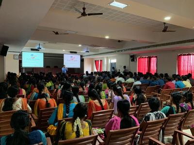 インドの大学で実施したASIA to JAPANの「日本就職説明会」の様子。大学と協力し参加を希望する学生を集めます。対象校は約100校に拡がりました。コロナ禍では面接会はすべてオンラインで行い、現在では来日型とオンラインのハイブリットで開催しています。