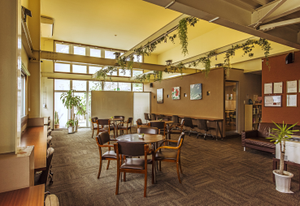 利用者のサードプレイスとして活用できるよう落ち着いた空間デザインに「施設っぽさ」の払拭にチャレンジしました。利用者のサードプレイスとして活用できるよう落ち着いた空間デザインに「施設っぽさ」の払拭にチャレンジしました。