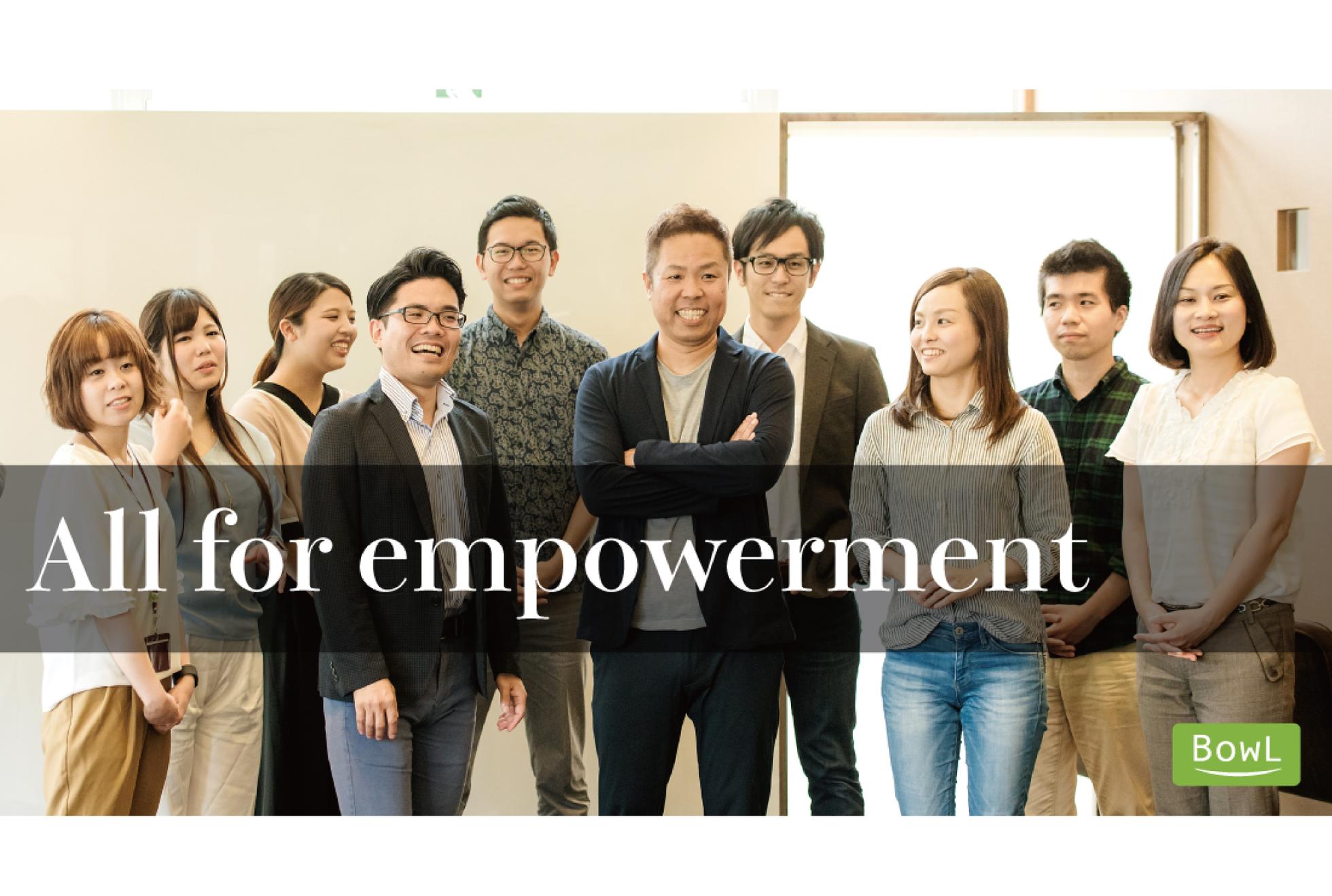 「なりたい自分になる」をビジョンに掲げている「BowL」の組織は、少し独特です。 まず、管理職がいません。 「ティール組織」「ホクラシー型組織」という言葉をご存知でしょうか? 私たちはこのような役職や肩書き、上下関係のない組織づくりをしています。年齢や社歴に関係なく全員がフラットなコミュニケーションのもと、メンバーそれぞれが自分の目的やアクションを自分で決めて、主体的に業務を進めているのです。 そこに成功や失敗と言った概念はありません。トライアンドエラーを繰り返しながら、自分のやりたいことに挑戦できる環境です。 またメンバーが守るべき「決まり」もありません。有給休暇は無制限に取得できますし、働く場所も時間も自分で決めていただけます。 メンバーそれぞれが他者に迎合するのではなく、「自分らしくある」ことを大切に、自分の役割に責任を持ちながらチームの最適解を探っていく。そうしたユニークな組織です。 「もっと自分らしく価値創造をしていきたい」 「もっと人を大事にする組織で働きたい」 「トップダウンの組織のあり方に疑問を感じている」 「誰かの評価で自分の給与や処遇が決まるのはもう嫌だ」 そんなあなたこそ、自分らしく輝ける場所がBowLです。 あなたと沖縄で出会えることを楽しみにしています。