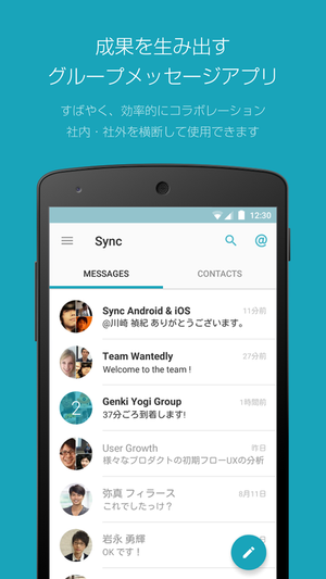 -『Sync』…ビジネス上でつながったユーザー同士かコミュニケーションを効率よく進められるグループコミュニケーションサービス。ビジネスコミュニケーション効率化を助けることで、面白いプロジェクトを色々なメンバーと行うことができます。