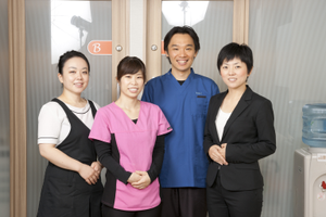 【皆様が最幸(さいこう)の人生を送るために、 健口(けんこう)と口福(こうふく)のお手伝いをします】というスローガンを実行するために、歯科医師・歯科衛生士・トリートメントコーディネーター・歯科助手・受付・保育士・事務・DTPオペレーター・クリーニングスタッフ、全スタッフ一丸となり、患者様と向き合っています。