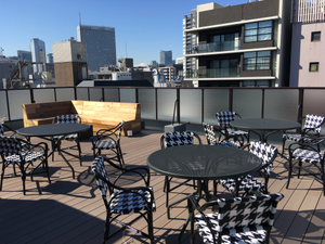 屋上にはこんな休憩スペースも♪晴れた日は快適なランチが!