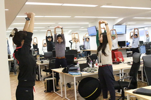 社員全員で体を動かすウェルネスタイム。午後の仕事の生産性向上にも繋がります。