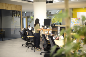 1日の大半を過ごすオフィスが居心地のよいものでなければいい仕事はできません。ラクスルが大切にする「クリエイティビティ」とは、例えば人との対話や、時間や季節の移ろいを感じるなど、五感の刺激によって生み出されるものだと考えています。