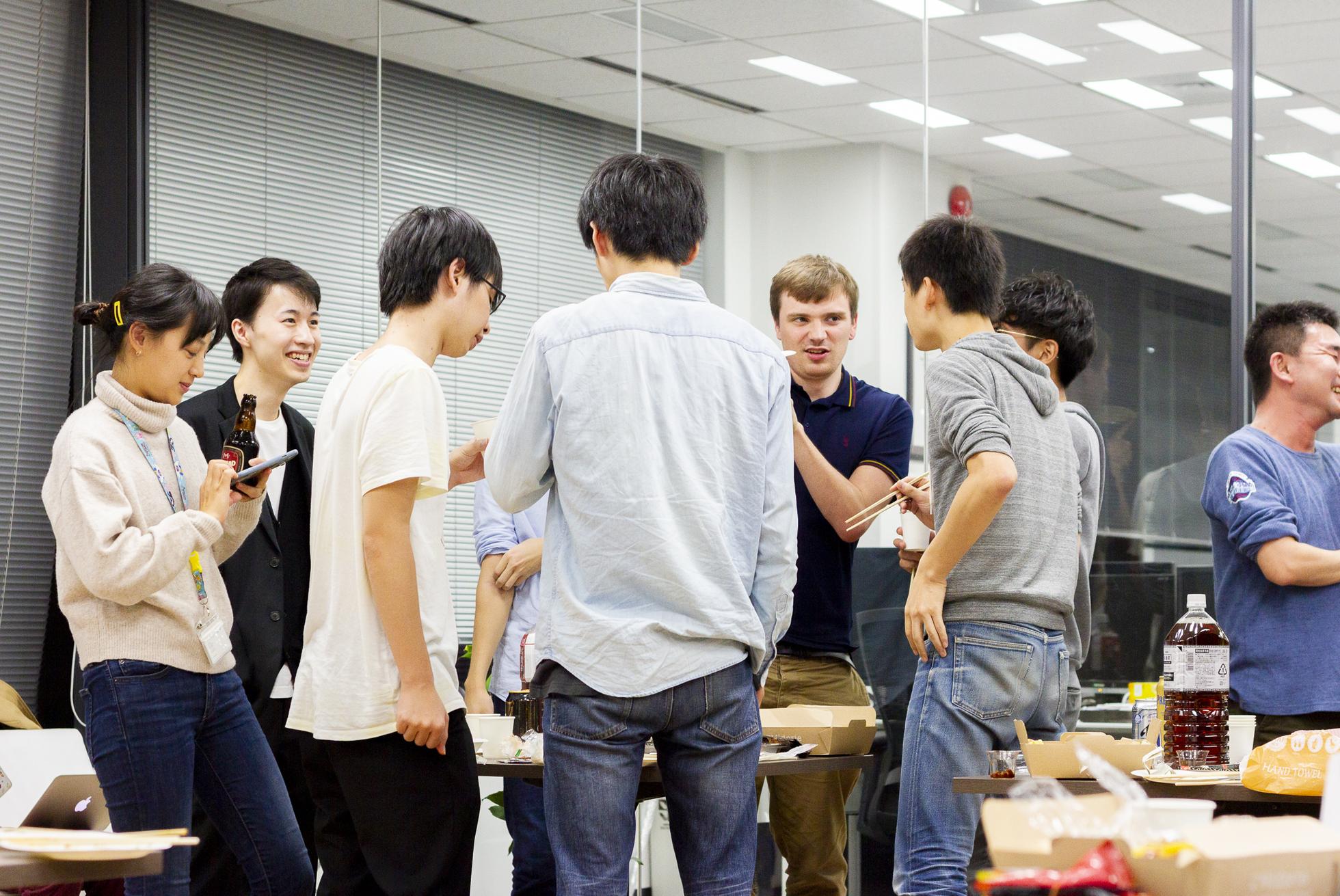 月に一度のカジュアルなオフィスパーティの場でも、ついつい話し込んでしまうようです。