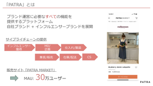 社内発ブランドに加え、インフルエンサーがプロデュースする自社ブランド8件を運営するマーケットプレイス。