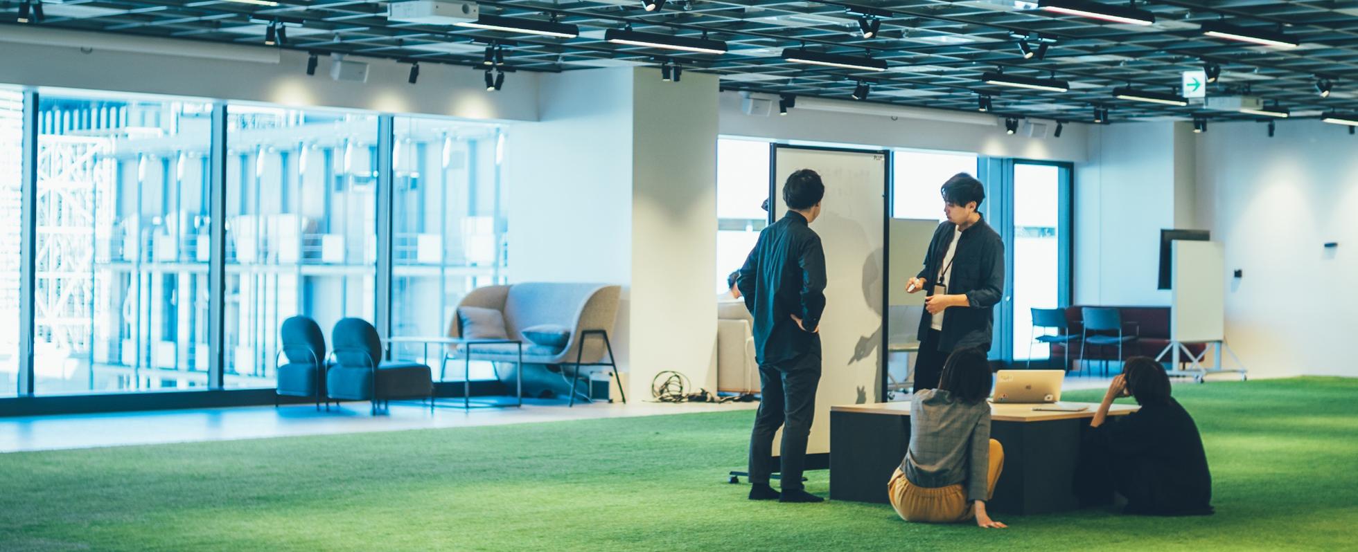 オフィス内に構える広大な芝生スペース、使い方は自由