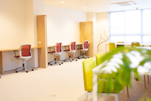 ベトナム拠点とは、チャットやオンラインミーティング、また時には直接現地に赴きコミュニケーションを取りながら開発する予定です。(写真:京都オフィスのコワーキングスペース)