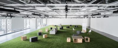 オフィス内に構える広大な芝生スペース、使い方は自由