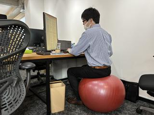 週に2日出勤するテレビ局を担当するディレクター。もう何年もバランスボールで業務しています。