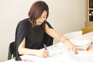 企画部で店舗デザインを担当する建築士。時代に合いながらも長くお客様に愛されるデザインを考えることを大切にしながら、そこで働くメンバーの想いをしっかりと汲み取れるインハウスが魅力だと話す。