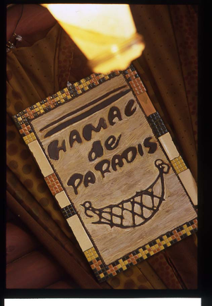 バルニバービ1号店である大阪 南船場のアマーク ド パラディ。1991年のオープン時、現バルニバービ 常務取締役である中島が作った木彫りのサイン。今もお店の入り口でみんなを見守ってくれています。