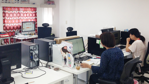 現場はハードなので、わりと散乱しています。作業効率を考慮し、長時間座りっぱなしでも疲れないAeronChairなどを使用しています。
