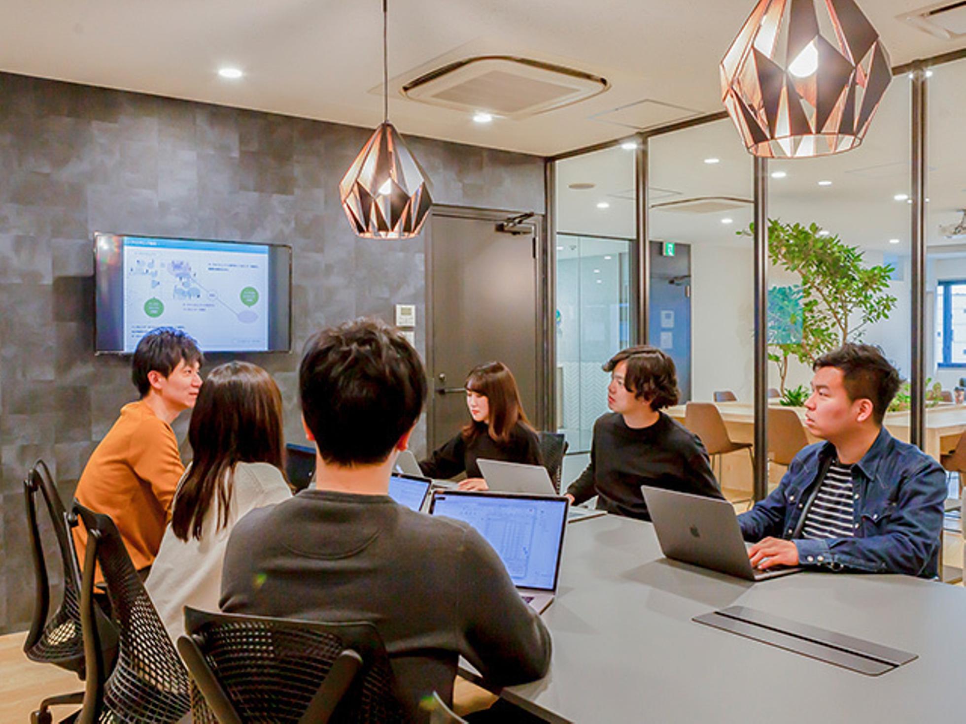 自デスクもございますが、オープンスペースでその日の気分に合わせ、自由に作業できる環境となっております。コミュニケーションも活発で、和気藹々とした空気感です。