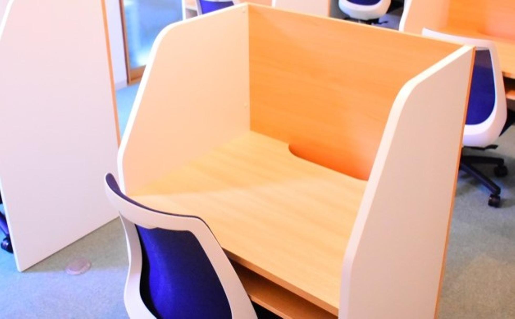 明るく開放的な自習室で生徒ともに。