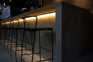 カウンターと間接照明は空間に合わせて造作しました。壁面をやさしく照らし、落ち着いた雰囲気を演出。