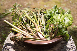 旬の時期には十数種類もの山菜が並びます