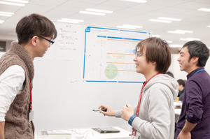 PCだけでなく、ホワイトボードを使ってアイディアを出すことも!