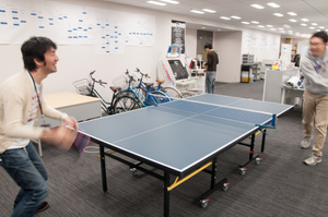 フロアには卓球台、ゲーム機、コーヒーマシン等も!