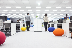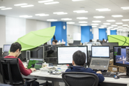 区切りがない1フロアの執務室は開放的で、コミュニケーションが取りやすい環境となっています。