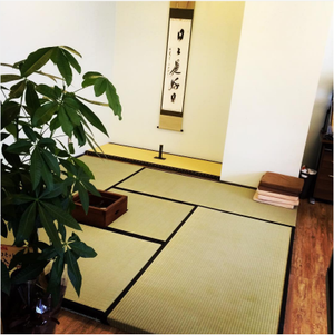 オフィスの隅には4.5畳の畳が!真ん中には廬もあります。和ですね!