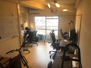 小さなオフィスですがこだわりの空間です。オフィスのデスクは特注。チェアもハーマンミラーやオカモトなど、仕事をしやすい環境をつくっています。