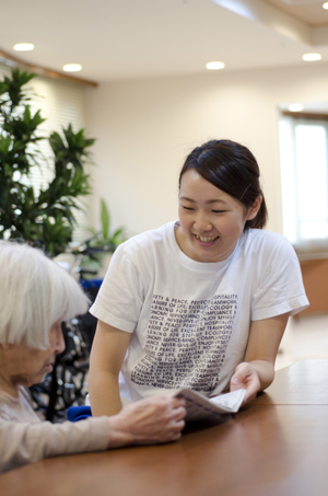 ■諦めない介護■ この言葉は、お客様に「前向きに頑張ろう」、「もっと自立したい」といった気持ちを抱いていただき、お客様の意思や想いを実践できるように、最後まで諦めずにやり続ける介護サービスのことを意味します。 善光会では、お客様と職員とが常に向き合う姿勢を大切にし、お客様に「人間らしく生きる人生」を送っていただくことを全職員で共有し、大切にしております。人間らしく生きる人生とは、自らの意思(願望や欲求)で頭(=脳)を使ったり、動いたり、食べたり、寝たりして、生きているという実感を自ら味わいながら生きる人生のことです。 人は歳を重ね、衰えていく過程のどこかで、自ら何かを行うことを諦めてしまいがちです。善光会は、お客様に何か一つでも自ら行いたいと思っていただけるように、そして自ら行動することで喜びや楽しさをいつまでも感じていただけるように努めています。