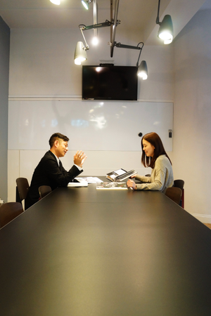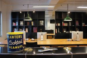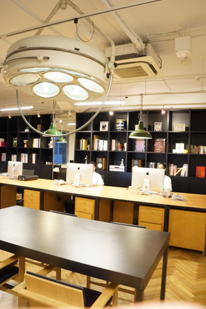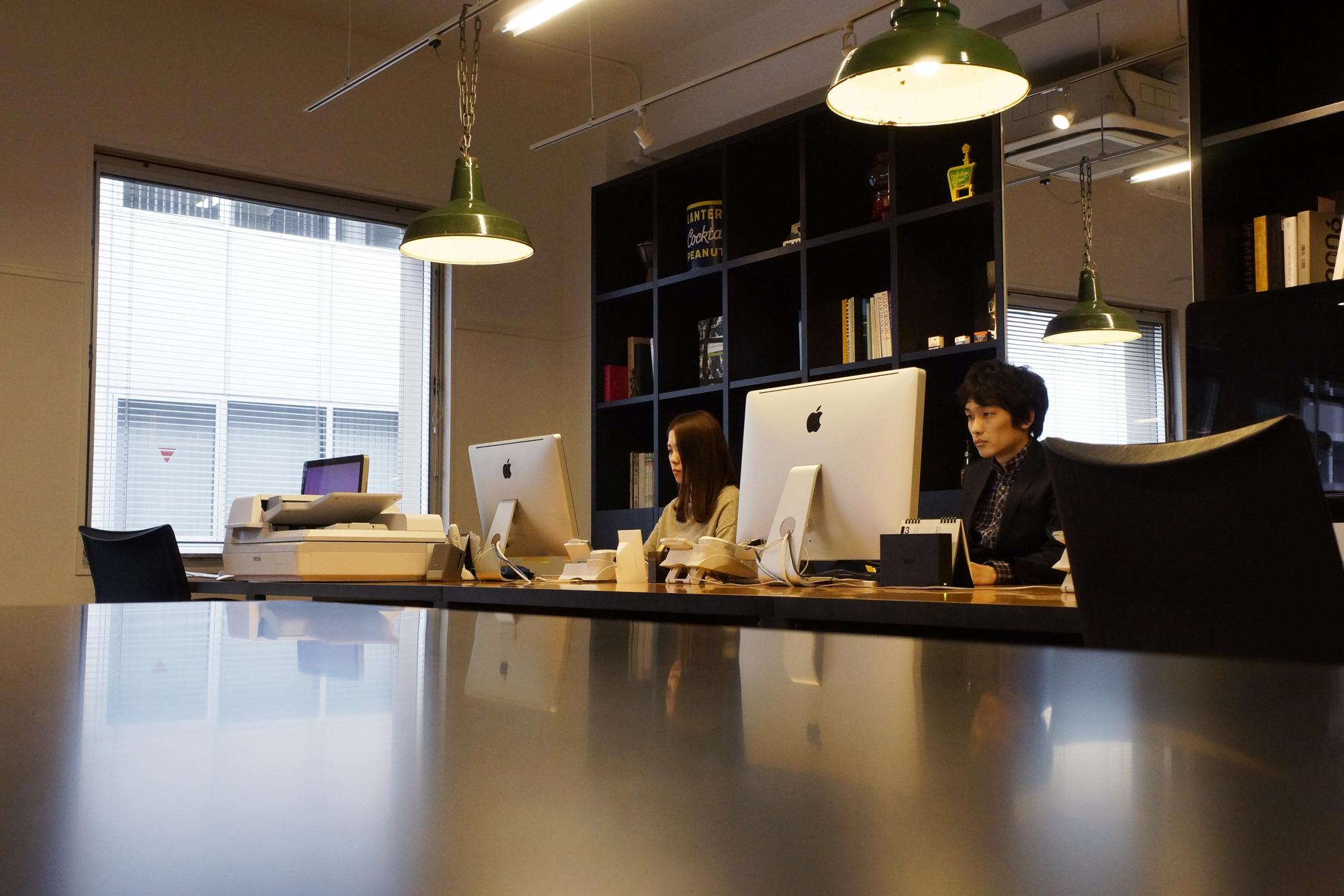 オフィスは小伝馬にあります。作業台の上に吊ったオペ室の照明がインテリアの肝。