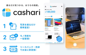 モノ資産の管理・活用アプリ「cashari / カシャリ」は、簡単なアプリ操作で、デジタルガジェットやブランドアイテムなどの所有アイテムの資産価値を短時間で確認でき、必要に応じていつでも資金化することができるサービスです。