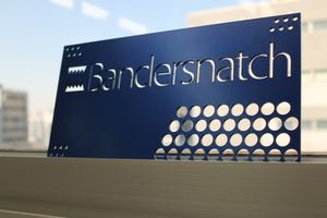 アルマイトとレーザーカッターで作成した看板。そこはかとなく漂う中二感。