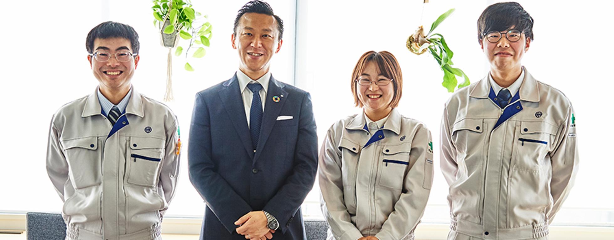 【企業理念】 心すなおに 〜全ての人のため 地域のため 未来のために〜 わが社は、偏見や先入観に左右されることなく事実に基づき何が正しいか本質を見定める誠の心、明るい物の見方の出来る心をもって、社会資本の形成充実への貢献と地域経済の発展に寄与することで、全社員とその家族、お客様、地域、未来の幸せを築くことを目的とします。 ①本質を見定める誠の心、明るい物の見方の出来る心=すなおな心 私たちは、すなおな心が人間を強く正しく、聡明にすることを理解しています。そのため原理原則に基づき何が正しいかを見極めて、それに従い使命感を持って行動します。 ②社会資本の形成充実への貢献と地域経済の発展に寄与 私たちは国土保全開発、産業基盤の建設(小資源開発、交通機関の整備、エネルギー開発)に貢献し、ものづくりを通して地域経済の発展に寄与します。また仕事を通して人財の育成と教育に貢献します。 ③全社員とその家族、お客様、地域、未来の幸せを築く 私たちはコンプライアンスを遵守し、近江商人の言う「売り手良し、買い手良し、世間良し」の三方良しに「未来(将来世代)」を加えた四方良しの考え方に基づき行動します。そのため社員、その家族、お客様、地域、未来の不利益に繋がることについては取り組みません。 【ビジョン】 シンカ発展し続け、近畿屈指の優良企業となります 深化発展私たちは深く考え行動に移す企業です 進化発展私たちは変化し前進し続ける企業です 真価発展私たちは真の価値ある企業です ①対顧客:思い描く快適環境を高いレベルで現実化 私たちはお客様が思い描く理想の状態(土木・建築・舗装・リニューアルなど)を価値ある品質で提供します。お客様の想いをかたちにする過程では、積極的コミュニケーションを取ることで願望を明確にし、安全を全てに優先しながら高い品質の成果品を納めます。また、生活の基本的要件である「衣食住」すべてに貢献する担いを全うすることで多くの人に安心安全を提供します。 ②対社員:働き甲斐のある職場環境 私たちは社員が物心共に満たされ、家族に仕事内容と職場環境を自慢できる働き甲斐ある組織環境を提供します。また社員同士が思いやりの心を持ち固い絆で結ばれた一体感ある組織となります。 ③対社会:地域社会の発展と安心安全 私たちは数多くある建設業者の中でも地域になくてはならない信頼のおける安心企業として地域発展に寄与します。また安心安全な暮らしを守り続ける地域の建設業者としても社会に大きく貢献します。