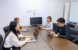 落ち着いた雰囲気のミーティングスペースでは、自社メディアの企画会議などを行っています。
