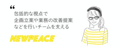 1988年、横浜生まれ。広告会社でPRプランナーとしてキャンペーン/プロモーションの企画からアウトプットまでの一連に携わるなか、2014年12月突然の退社。NEWPEACEにではコミュニーション領域のプラン二ング・進行を担当。話題と共感を生む型にはまらない仕掛けづくりが得意。音楽活動も五月雨に行う。