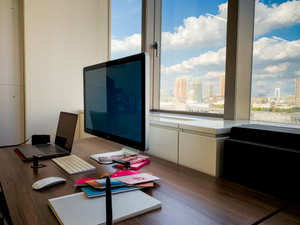 窓からは建設中の高輪ゲートウェイ駅が見下ろせます