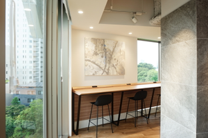 ビル1Fのラウンジです。普段はここでオフィス入居者の方々とコミュニケーションをとっていただきます。