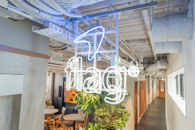 東京本社のカフェテリア。休憩や作業などに利用できるスペースです。